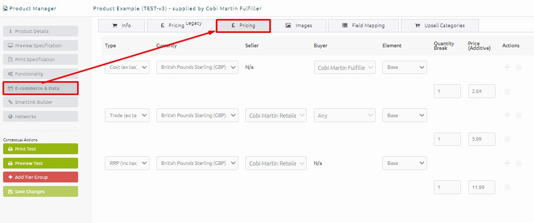 Well, to begin with you need to ensure the product you are updating has pricing set up within the "Pricing" menu as shown below. In this example we can see the cost, trade and RRP pricing has been set against the product which means we can use the EPA based on the products pricing setup. If your products are missing pricing, the actual EPA setup will fail so this needs to be set up.